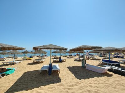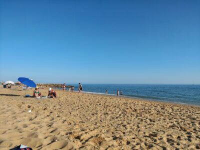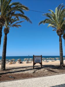 Besonders angenehm war die unmittelbare Nähe zu den verschiedenen Strandabschnitten: Die Praia de Quarteira erstreckt sich über mehrere Kilometer und geht nahtlos in kleinere Abschnitte wie die Praia Azul über. Während die zentralen Bereiche vor der Promenade eher lebendig sind, findet man schon wenige hundert Meter weiter ruhigere Zonen mit etwas mehr Platz und entspannter Atmosphäre. Das Wasser ist hier meist klar und ruhig, ideal zum Schwimmen oder einfach zum Treibenlassen. Diese Kombination aus zentraler Lage, kurzen Wegen und unmittelbarer Strandnähe hat unseren Aufenthalt unglaublich komfortabel gemacht. „Lage, Lage, Lage“ – dieses Motto traf hier wirklich zu hundert Prozent zu.