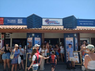 Am Samstagrmittag ging es für uns nach Vilamoura, wo entlang des Hafens gleich mehrere Anbieter ihre Touren zu den berühmten Höhlen starten. Unser Glück: Kaum standen wir am Schalter, legte wenige Minuten später schon ein Boot ab – und wir bekamen noch drei Tickets. Besseres Timing hätte es kaum geben können.