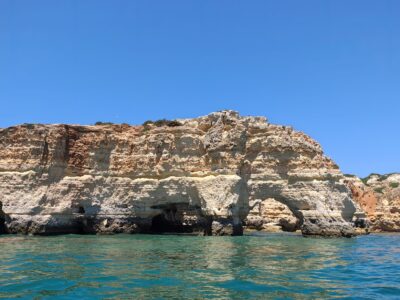 Die Höhlen und Felsen der Algarve sind das Ergebnis jahrtausendelanger Erosion. Wind, Regen und die Wellen des Atlantiks haben die weichen Kalksteinküsten geformt und dabei Bögen, Grotten und bizarre Skulpturen entstehen lassen. Besonders beeindruckend war, wie das Sonnenlicht durch Öffnungen ins Wasser fiel und die Höhlen in schimmerndes Grün und Türkis tauchte. Ein Naturwunder, das die Algarve zu Recht berühmt gemacht hat.