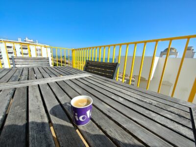 Unsere Unterkunft in Quarteira hätte kaum besser liegen können: direkt an der Strandpromenade, nur ein paar Schritte vom Meer entfernt – genauer gesagt am Abschnitt der Praia Azul, einem Teil des durchgehenden Sandstrandes von Quarteira. Die Lage war ein echter Glücksgriff: Restaurants, kleine Läden und sogar ein charmantes Frühstückscafé lagen praktisch vor der Haustür, sodass wir jeden Morgen ganz entspannt und ohne lange Wege in den Tag starten konnten. Die Wohnung selbst war großzügig geschnitten: zwei Schlafzimmer, ein großes Wohnzimmer mit halboffener Küche und gleich drei Balkone, auf denen man von morgens bis abends Sonne und frische Meeresluft genießen konnte. Alles, was man braucht, war da – von der Kaffeemaschine bis zum Fernseher (auch wenn letzterer im Urlaub natürlich ausblieb).