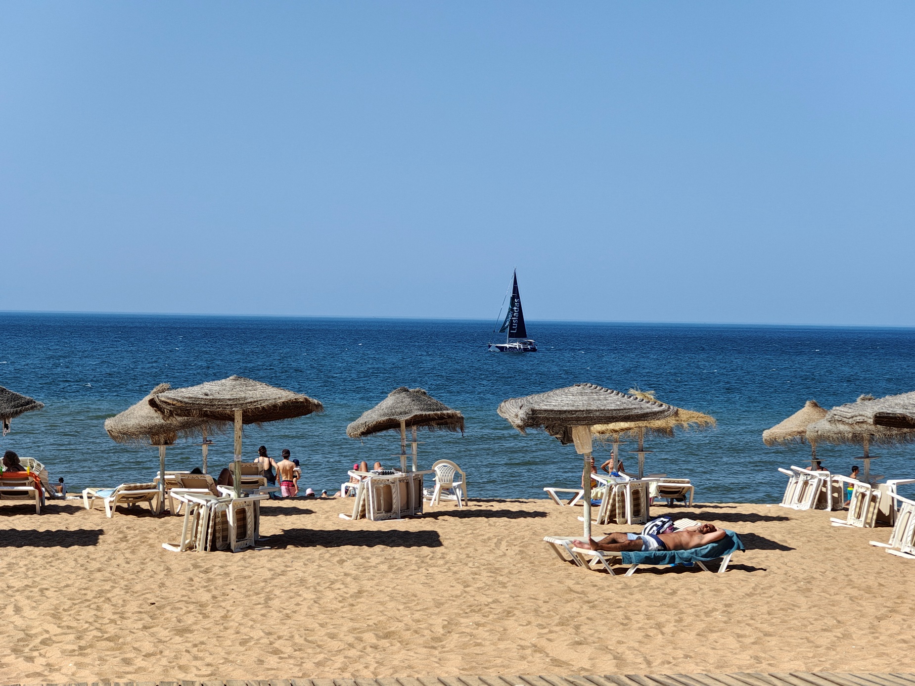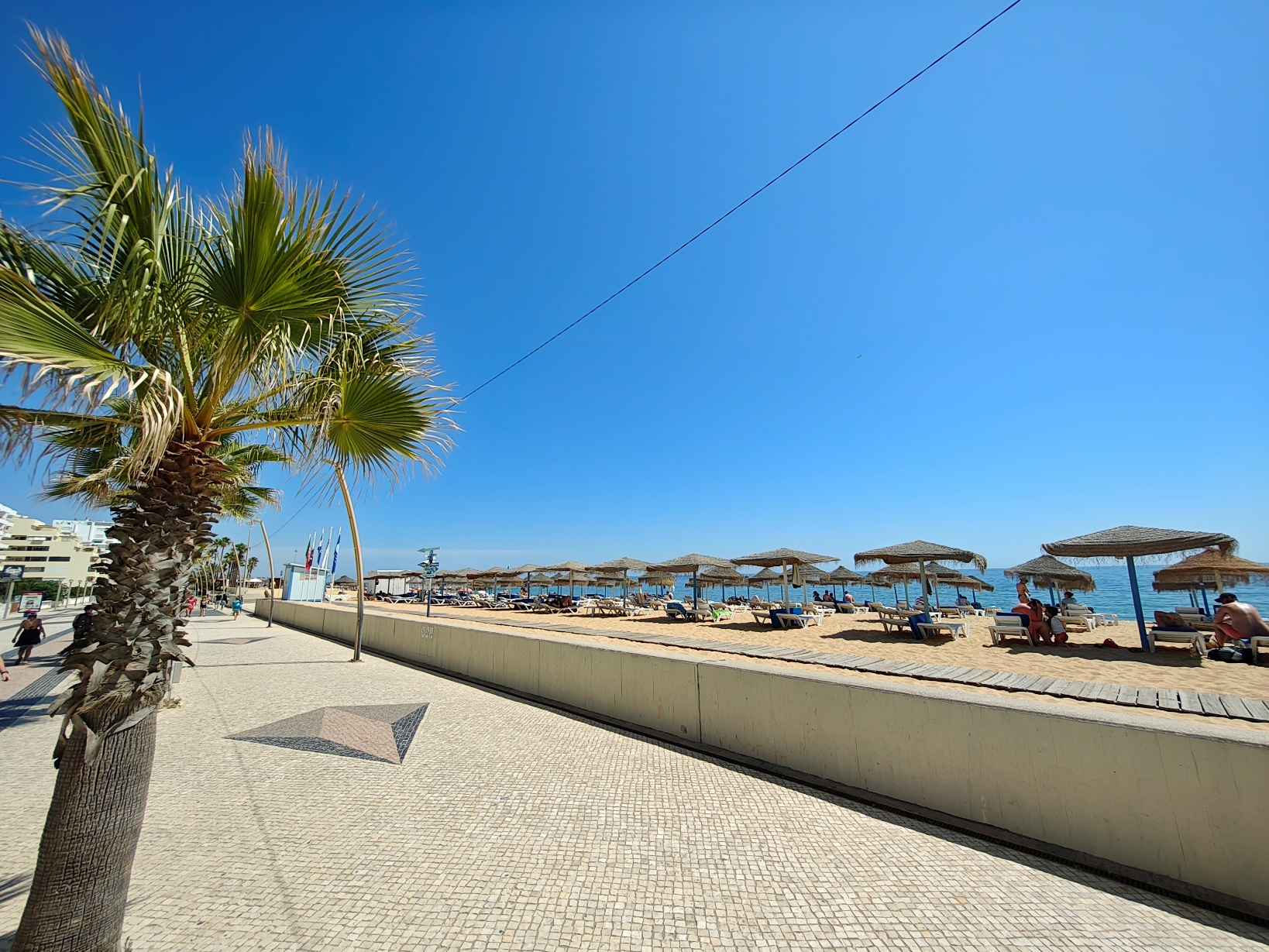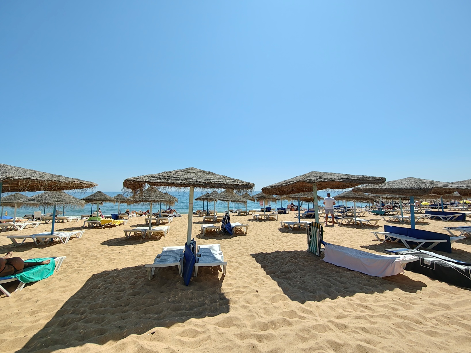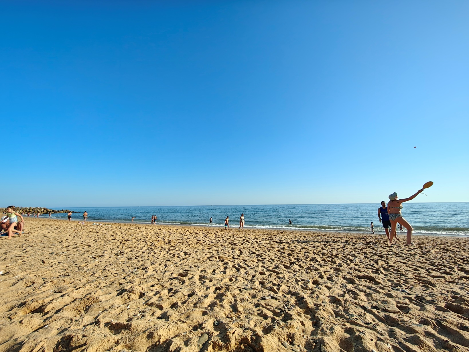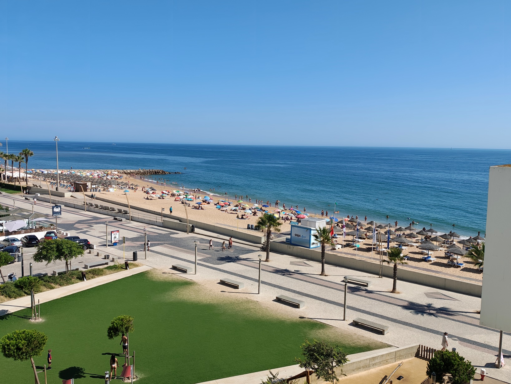 Besonders angenehm war die unmittelbare Nähe zu den verschiedenen Strandabschnitten: Die Praia de Quarteira erstreckt sich über mehrere Kilometer und geht nahtlos in kleinere Abschnitte wie die Praia Azul über. Während die zentralen Bereiche vor der Promenade eher lebendig sind, findet man schon wenige hundert Meter weiter ruhigere Zonen mit etwas mehr Platz und entspannter Atmosphäre. Das Wasser ist hier meist klar und ruhig, ideal zum Schwimmen oder einfach zum Treibenlassen. Diese Kombination aus zentraler Lage, kurzen Wegen und unmittelbarer Strandnähe hat unseren Aufenthalt unglaublich komfortabel gemacht. „Lage, Lage, Lage“ – dieses Motto traf hier wirklich zu hundert Prozent zu.