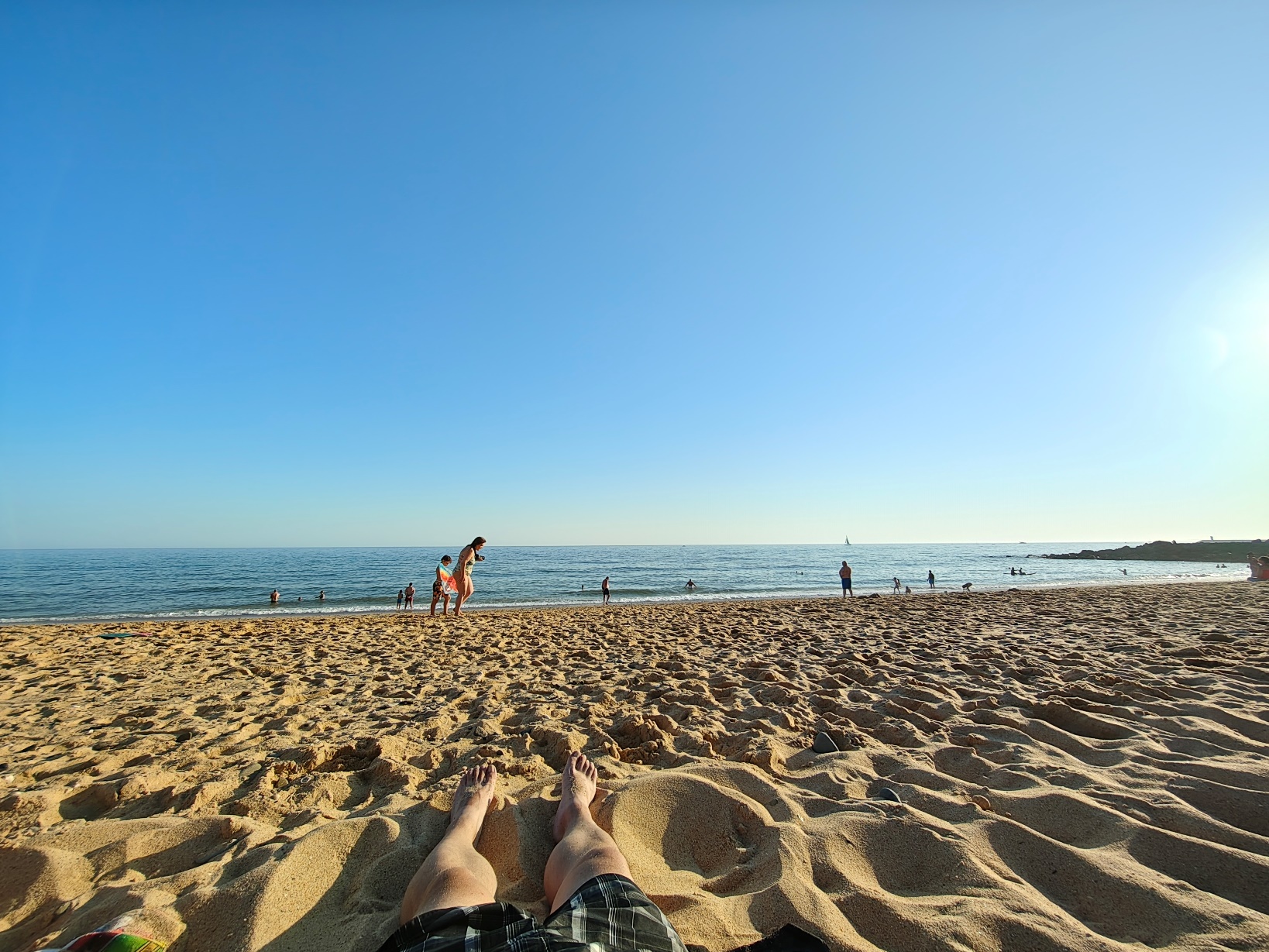 Nachdem wir in der Wohnung angekommen waren, hielt uns nichts mehr drinnen. Es war zwar schon später Nachmittag, doch die Sonne stand noch warm über dem Atlantik. Der Strand lag praktisch vor der Tür, und so war klar: Erst einmal Füße in den Sand und durchatmen. Natürlich konnte ich nicht widerstehen, direkt ins Meer zu springen. Frisch – wie es sich für den Atlantik gehört – aber genau das Richtige nach der Reise. Dieser erste Sprung war für mich die perfekte Mischung aus Ankommen und purem Urlaubsgefühl. Ab diesem Moment war klar: Jetzt beginnt die Auszeit wirklich.