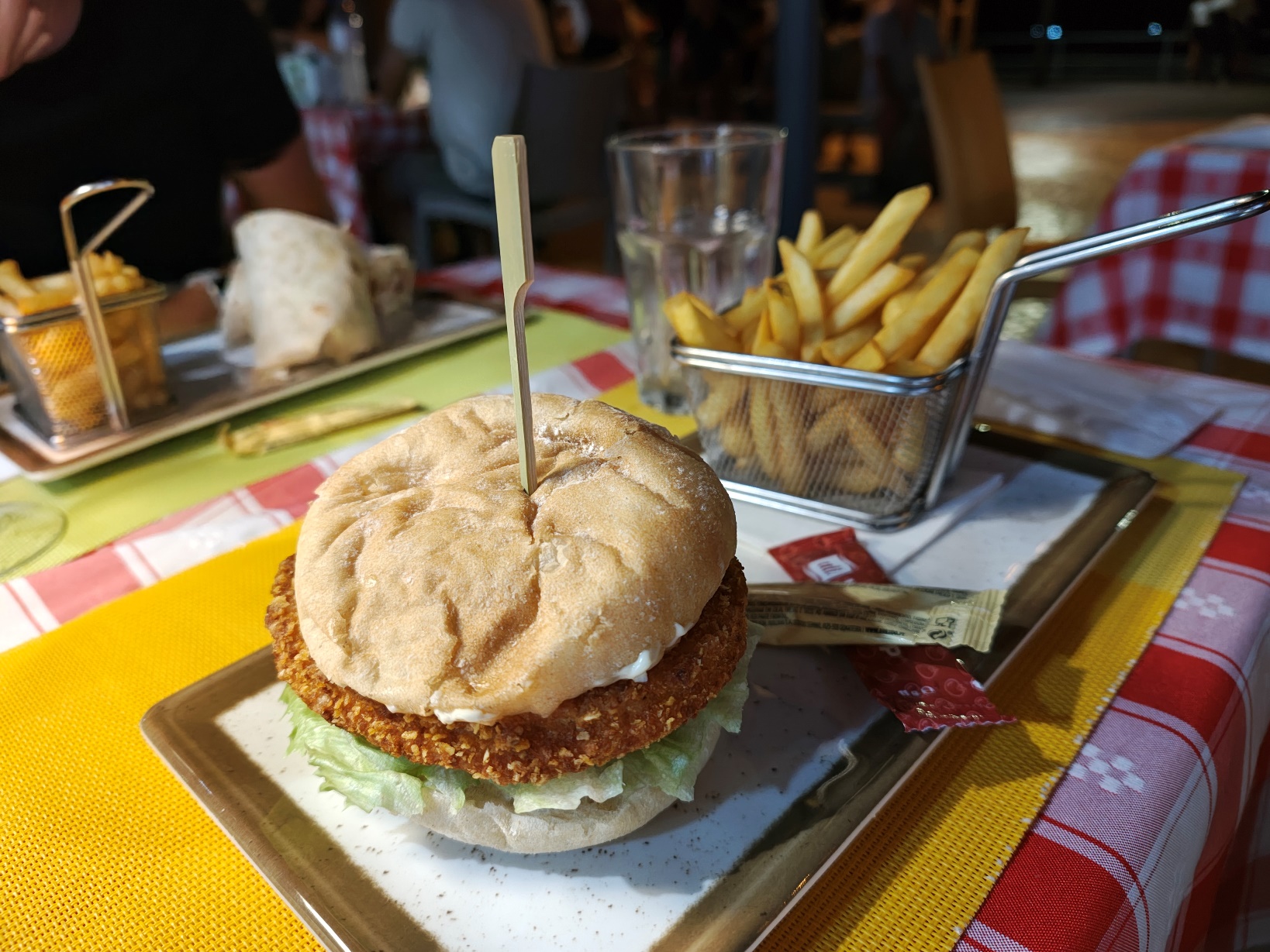 Zum Abschluss des Abends landeten wir in der Pizzeria e Gelataria Roma, direkt an der Promenade von Quarteira. Obwohl wir recht spät essen gingen, war der Laden noch gut besucht – ein Zeichen dafür, dass er bei Einheimischen wie Tourist:innen beliebt ist. Ich selbst entschied mich für einen Chickenburger, der überraschend gut war, während die Atmosphäre ringsum vom lebendigen Treiben der Promenade geprägt war. Touristisch, ja – aber gleichzeitig einladend und entspannt. Der Service war freundlich, die Preise absolut fair.