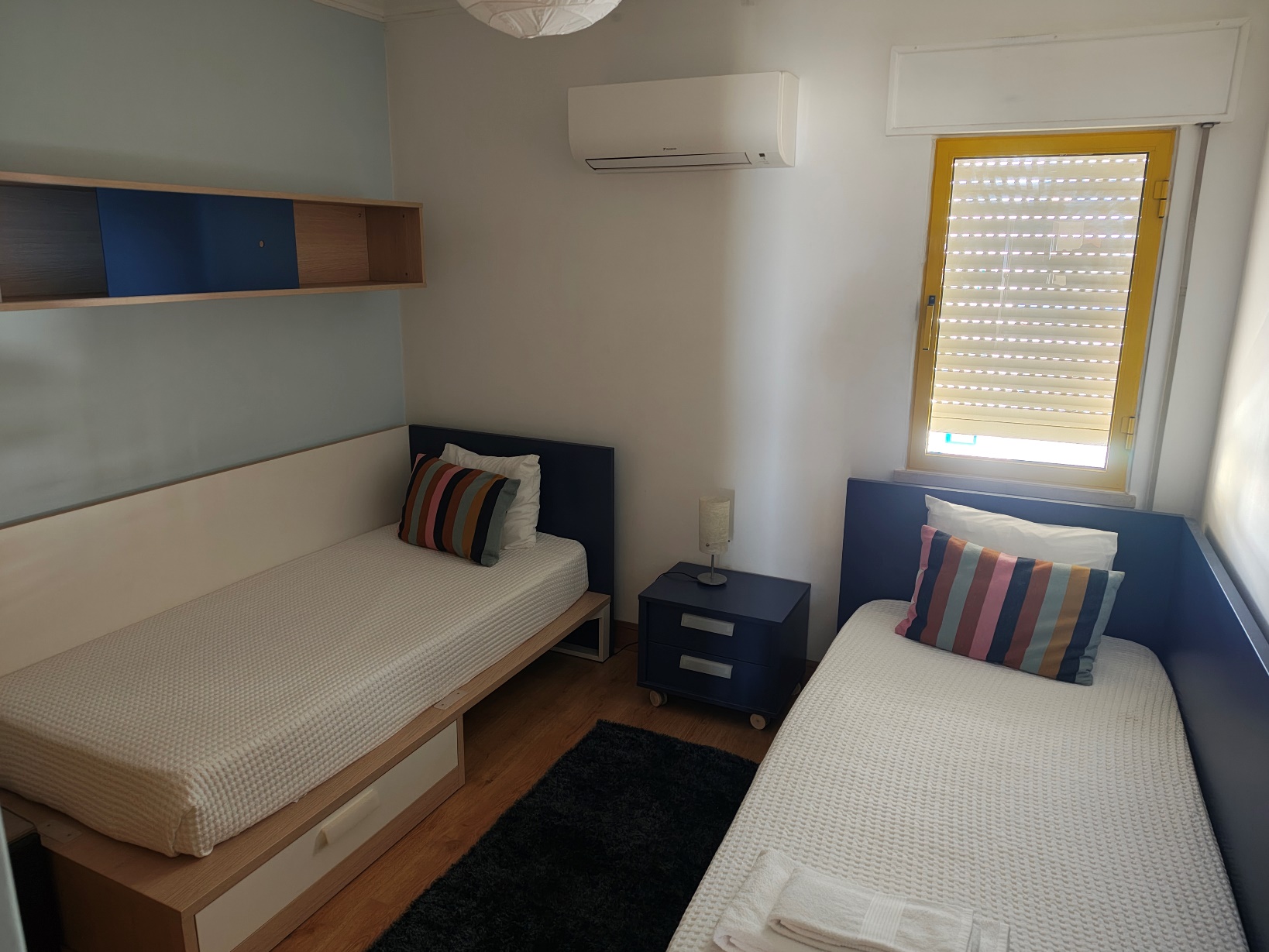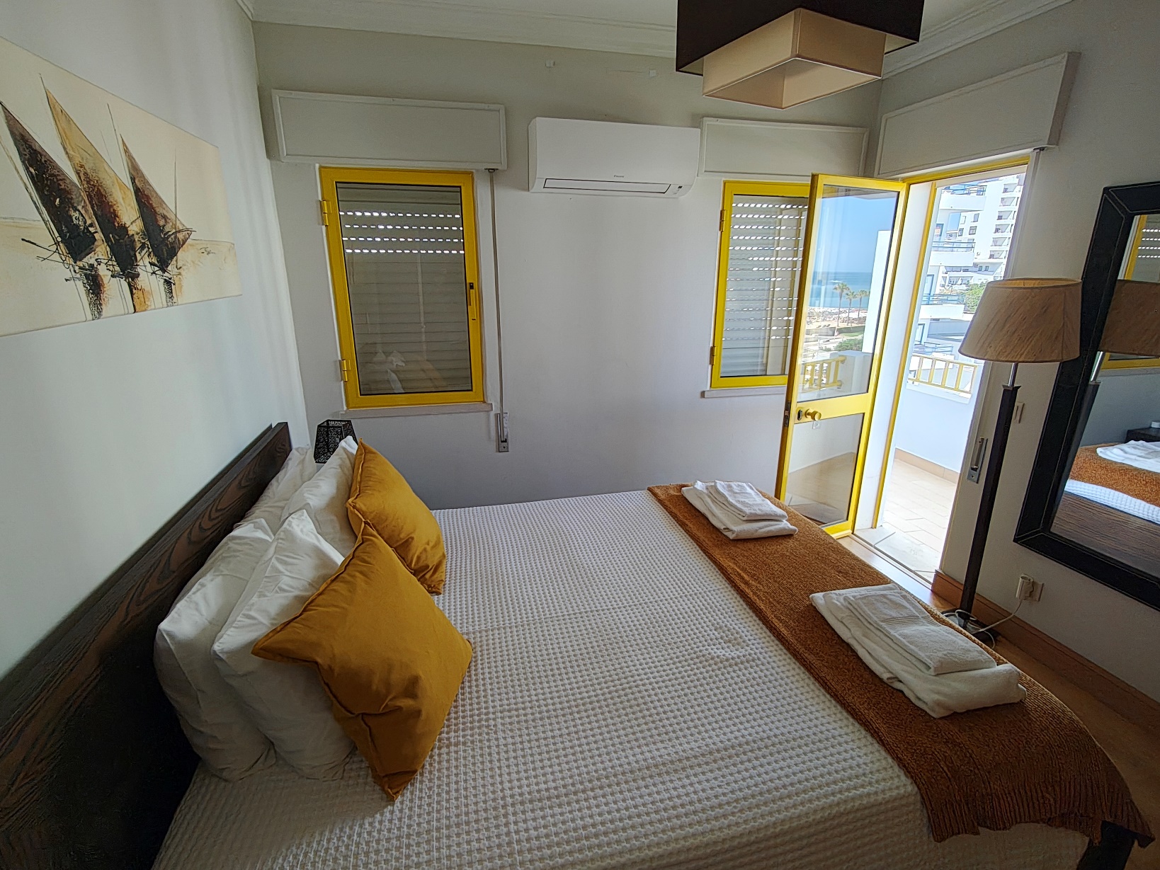Unsere Unterkunft in Quarteira hätte kaum besser liegen können: direkt an der Strandpromenade, nur ein paar Schritte vom Meer entfernt – genauer gesagt am Abschnitt der Praia Azul, einem Teil des durchgehenden Sandstrandes von Quarteira. Die Lage war ein echter Glücksgriff: Restaurants, kleine Läden und sogar ein charmantes Frühstückscafé lagen praktisch vor der Haustür, sodass wir jeden Morgen ganz entspannt und ohne lange Wege in den Tag starten konnten. Die Wohnung selbst war großzügig geschnitten: zwei Schlafzimmer, ein großes Wohnzimmer mit halboffener Küche und gleich drei Balkone, auf denen man von morgens bis abends Sonne und frische Meeresluft genießen konnte. Alles, was man braucht, war da – von der Kaffeemaschine bis zum Fernseher (auch wenn letzterer im Urlaub natürlich ausblieb).